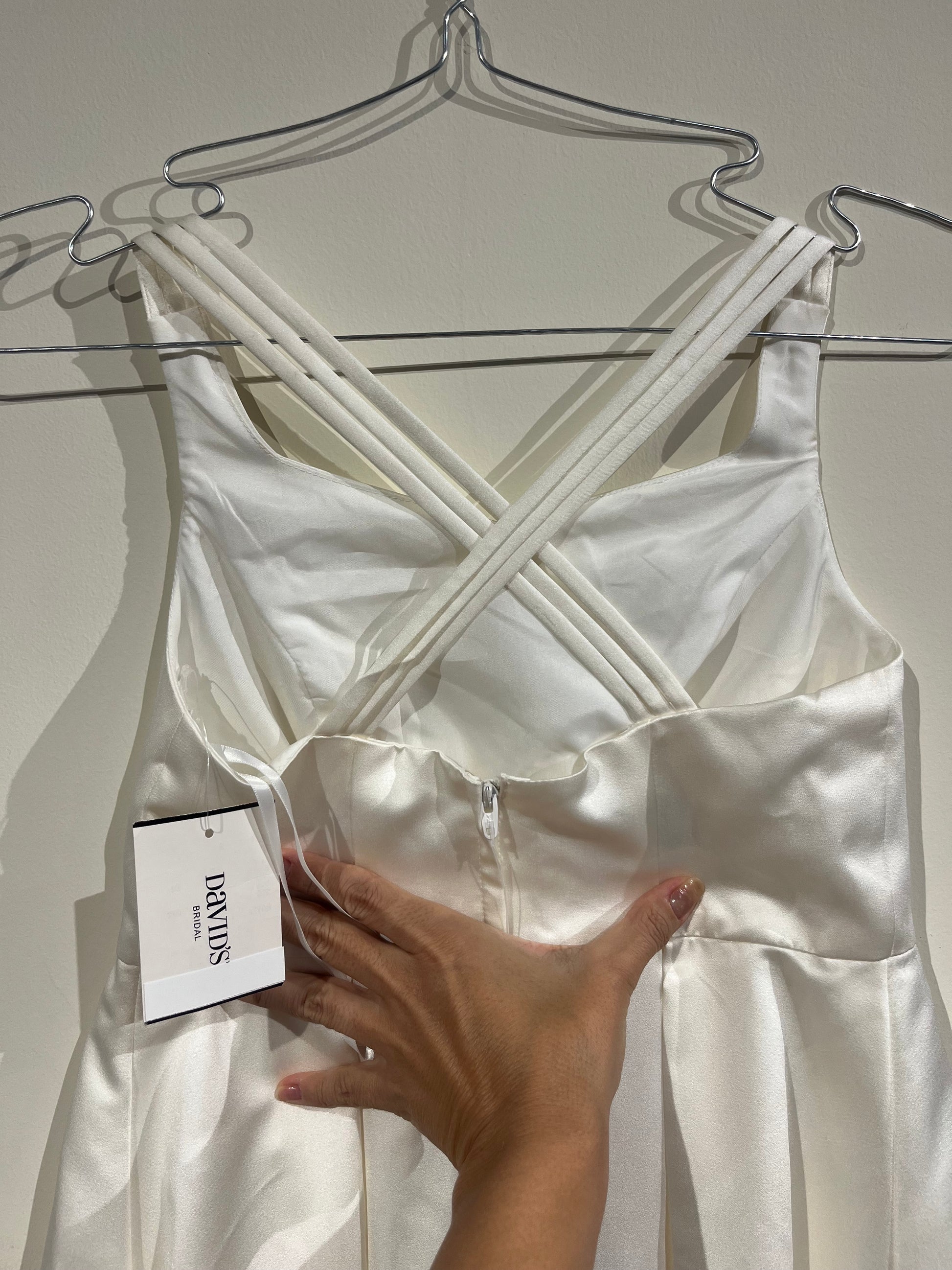 Original David’s Bridal Flower Girl Dress – Satin High-Low, Size 8 (Brand New with Tag).