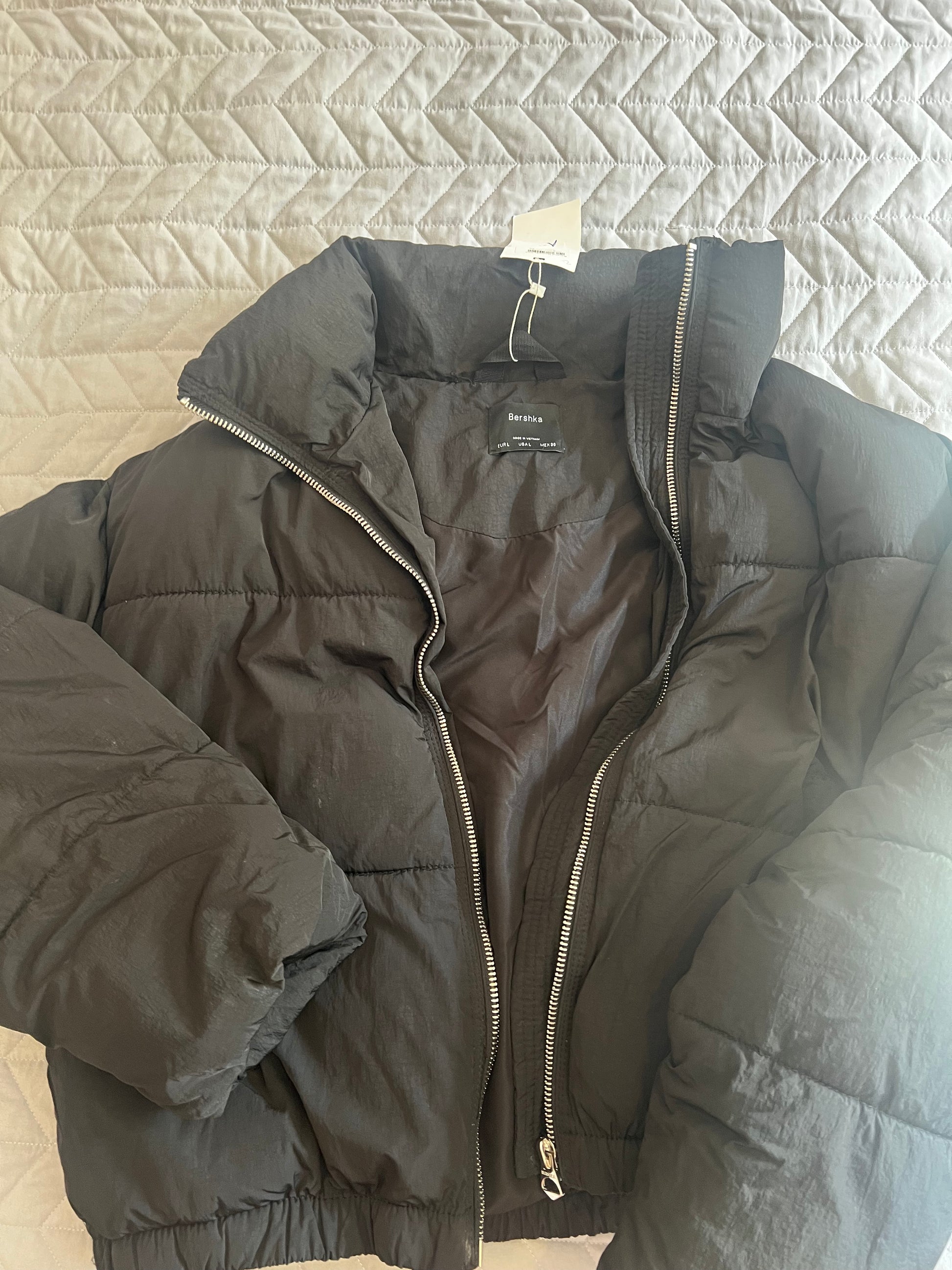 Original Bershka Black Puffy Winter Jacket – Size L, Brand New With Tag, Last Year Design.