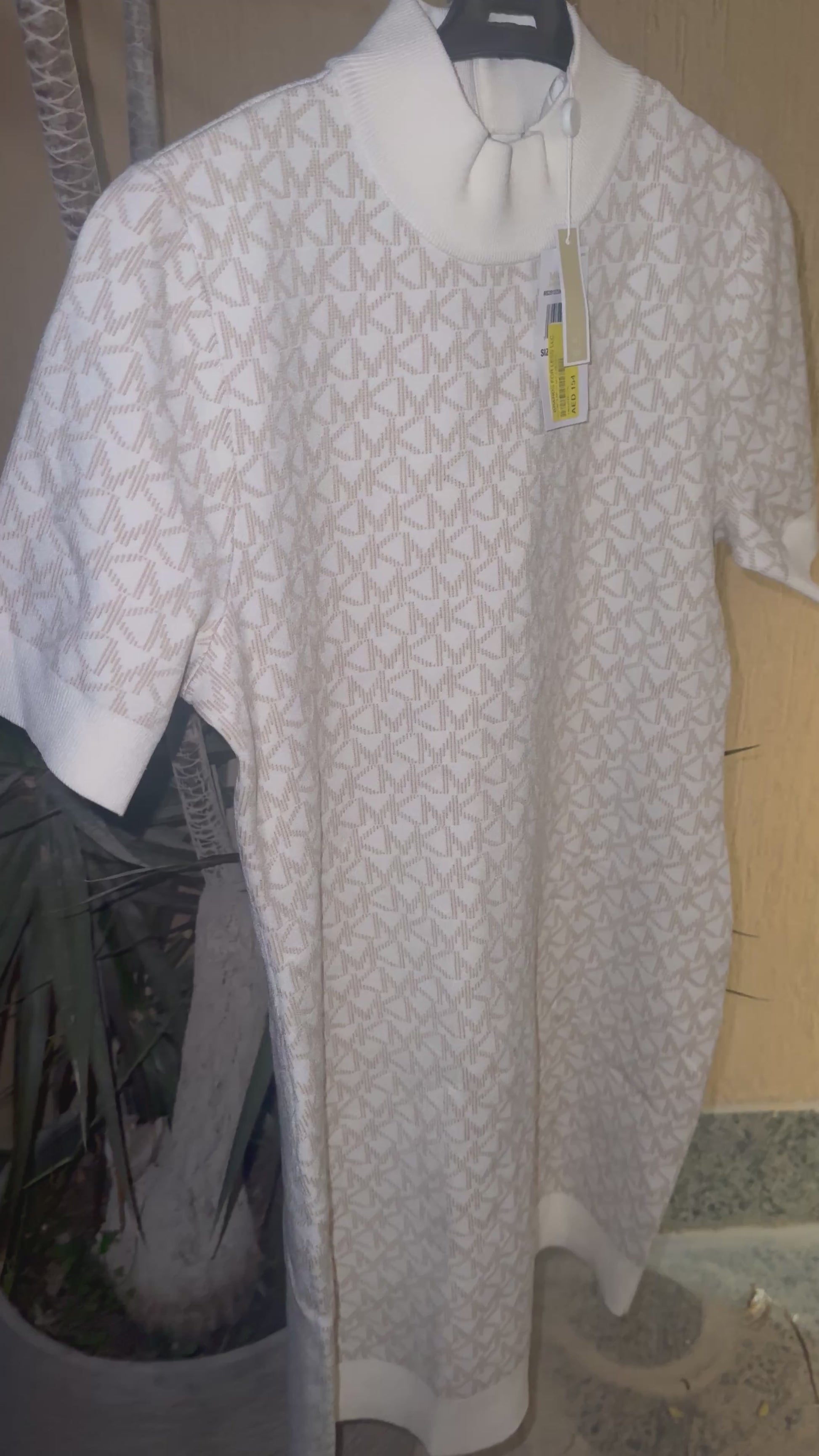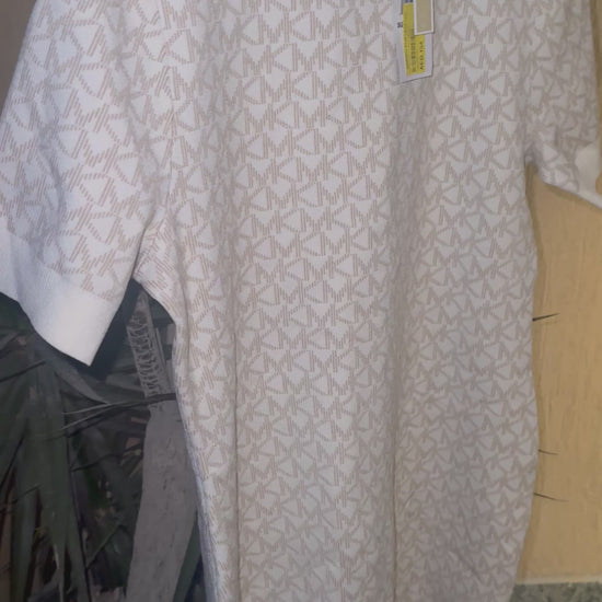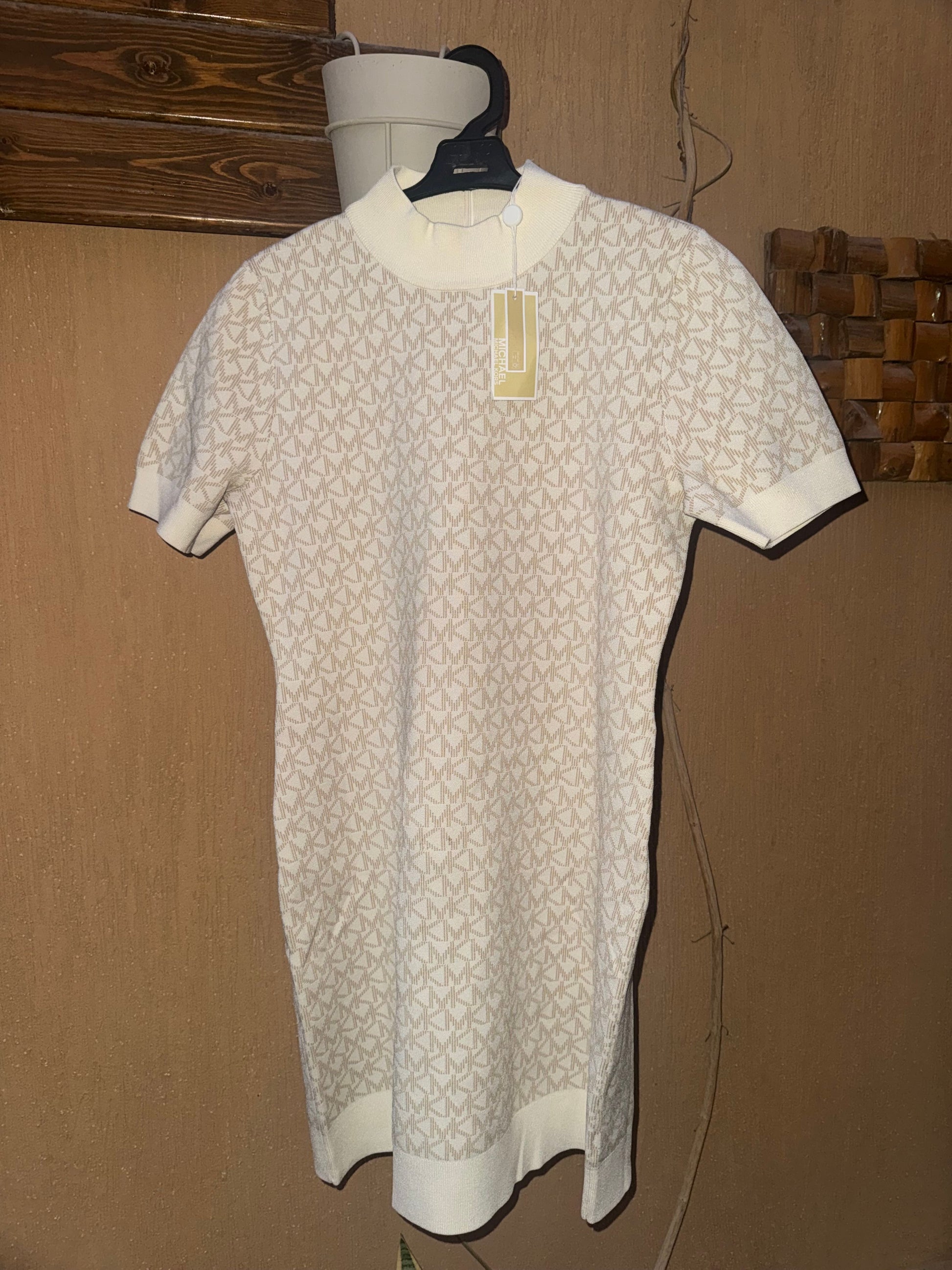 Original Michael Kors Cream/Off-White Knit Dress – Slim Fit with Beige Monogram Logo.