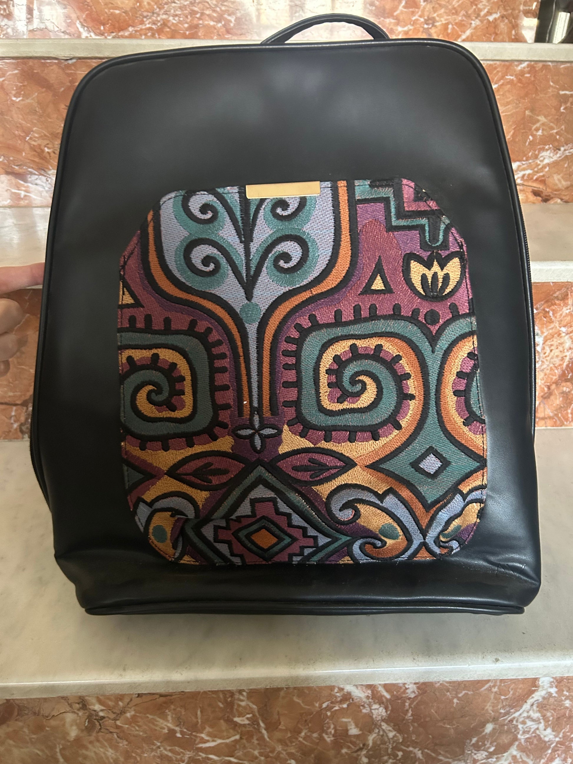 Original PAVO Laptop Backpack – Black with Colorful Fabric | Fits up to 15.6″ Laptop | 30×15×40 cm | 1 Large External Pocket | 2 Small Inner Pockets.