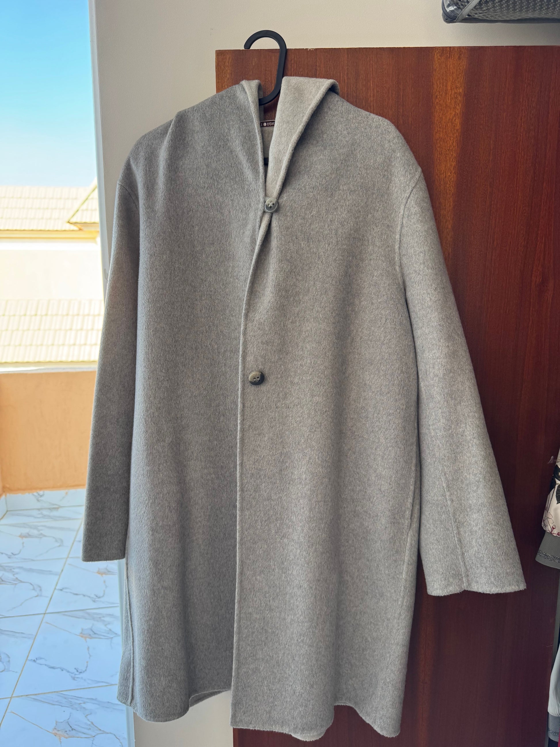 Original PUNT ROMA wool hooded coat, medium length, light gray.