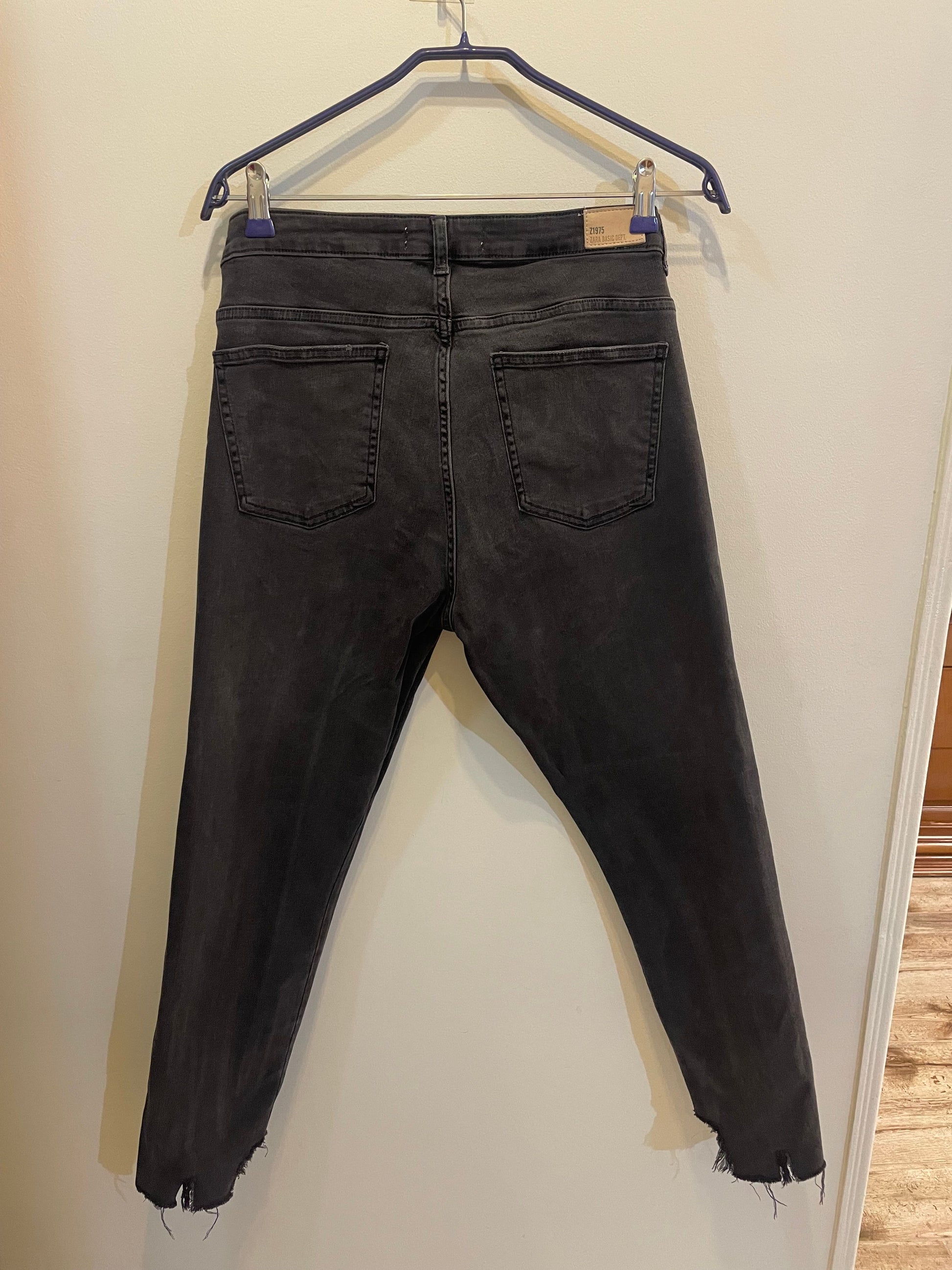 Original ZARA Jeans – Dark Grey (Light Fade in the Middle) | Printed Detail on One Leg | Fits from 40 (Not Skinny) | Like New.