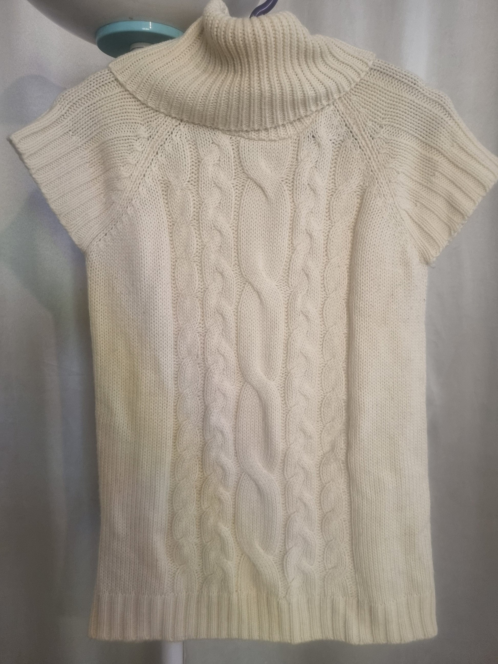 Original ZARA Off-White High-Collar Knitted Sweater Vest – Fits Women S/M (Tagged Kids).